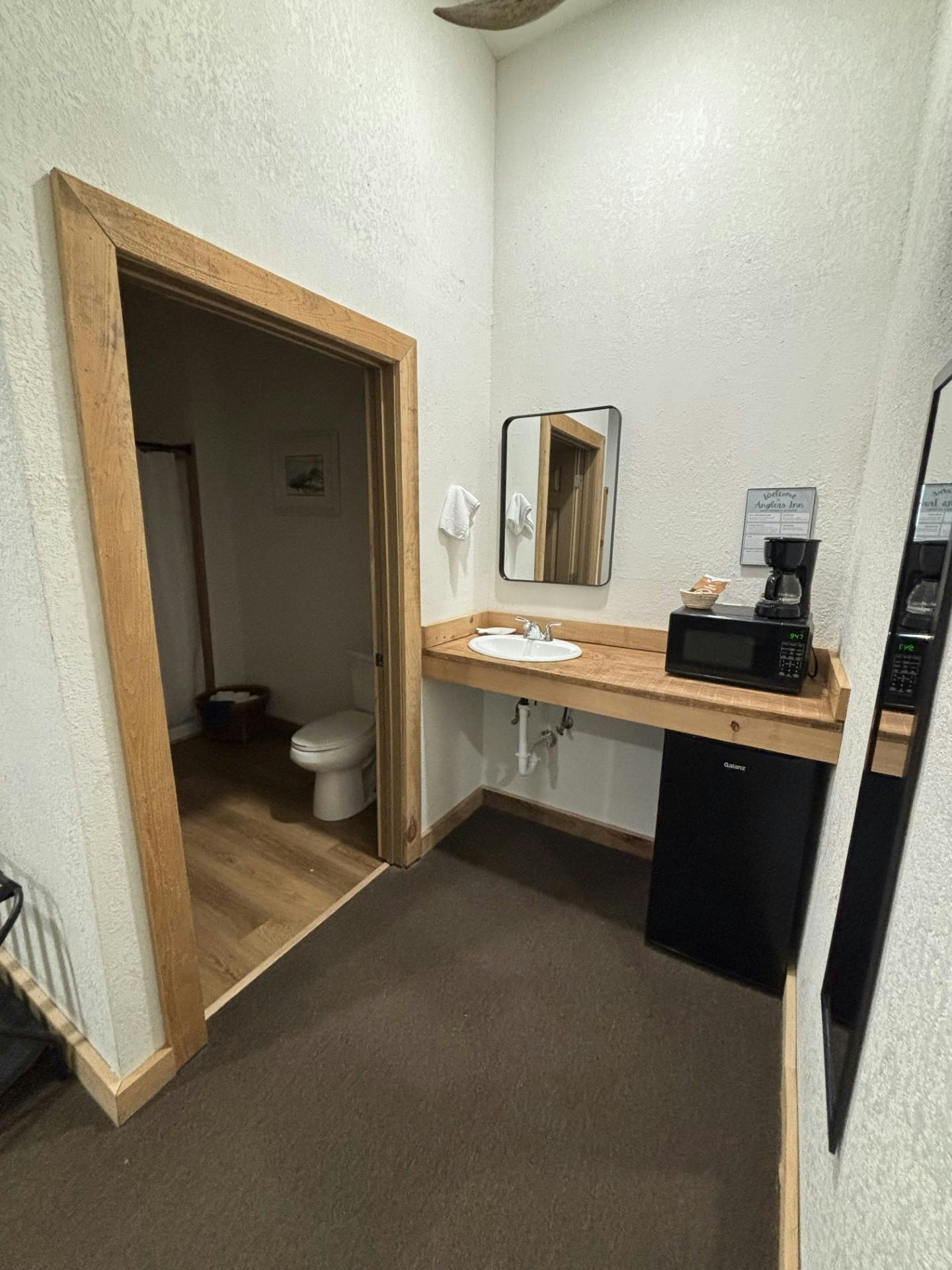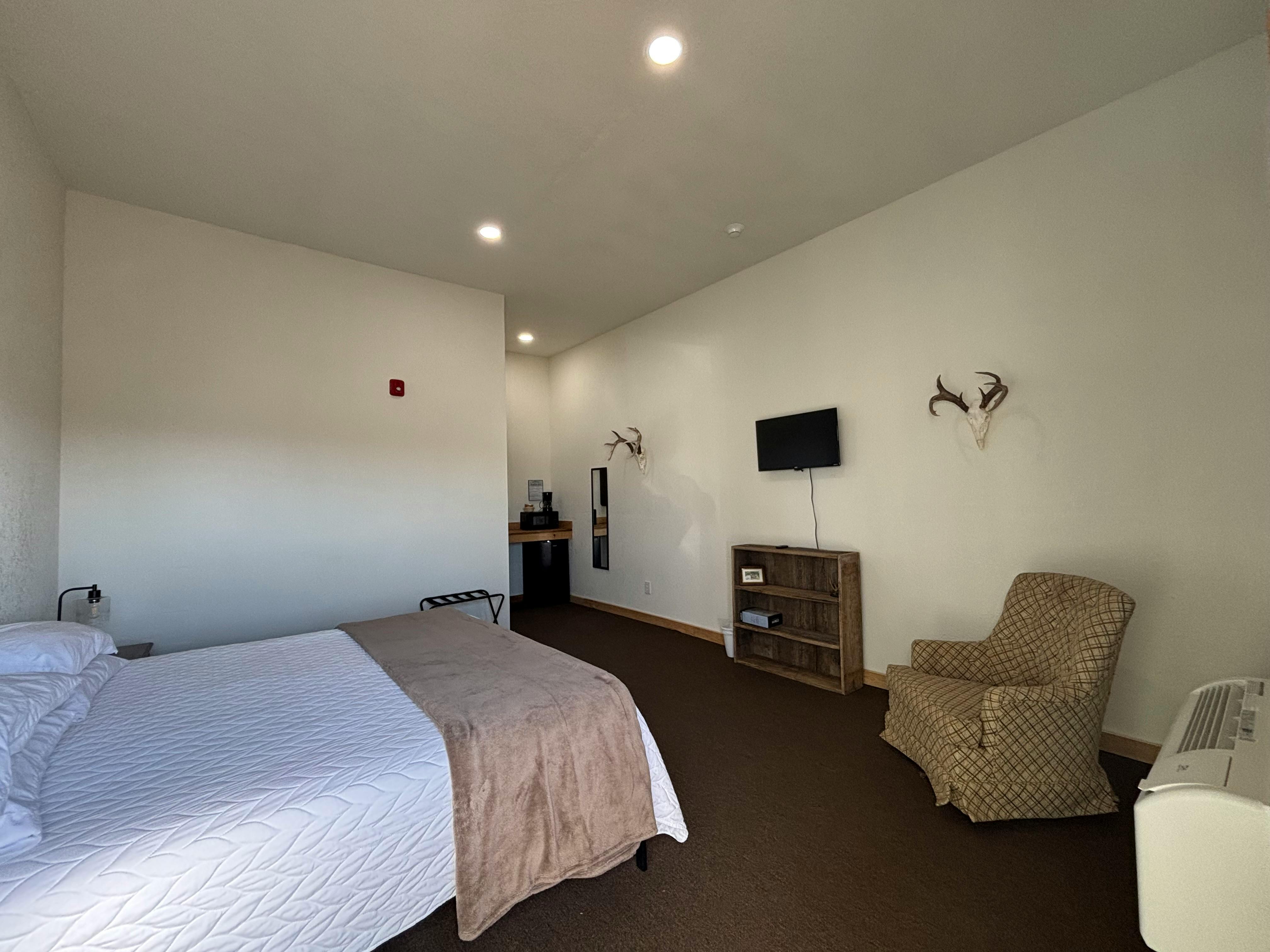 Room features 1 King bed, private bathroom, essential amenities and tv streaming